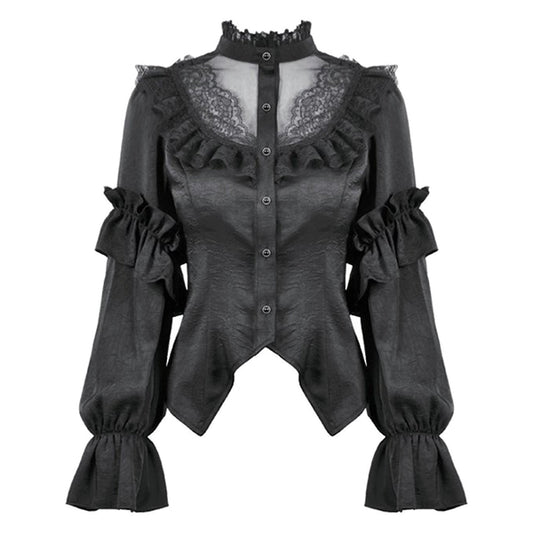 Dark In Love Tattered Silhouette shirt with burnt-edge lace 'Eris'