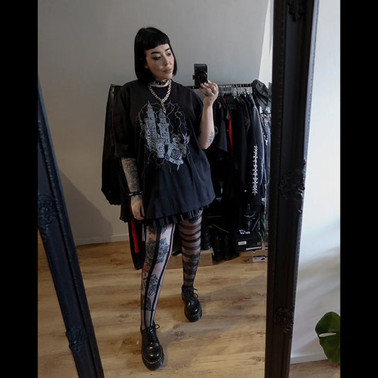 Pamela Mann Skeleton Middle Finger knee-high socks