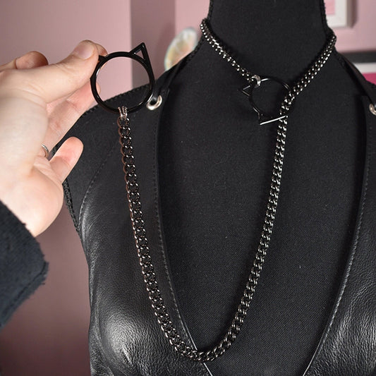 Naughty Pawsies Gunmetal & Black Kitty 28" fashion pull choker