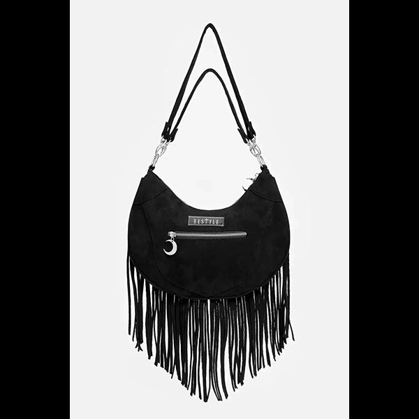 This Restyle Taangled Vines tassel bag with embroidered vine leaves and sweeping tassels evoke a quiet, forested magic. Earthy, romantic, and rooted in nature – it's the perfect blend of WhimsiGoth and woodland charm. A must-have piece for your wild heart